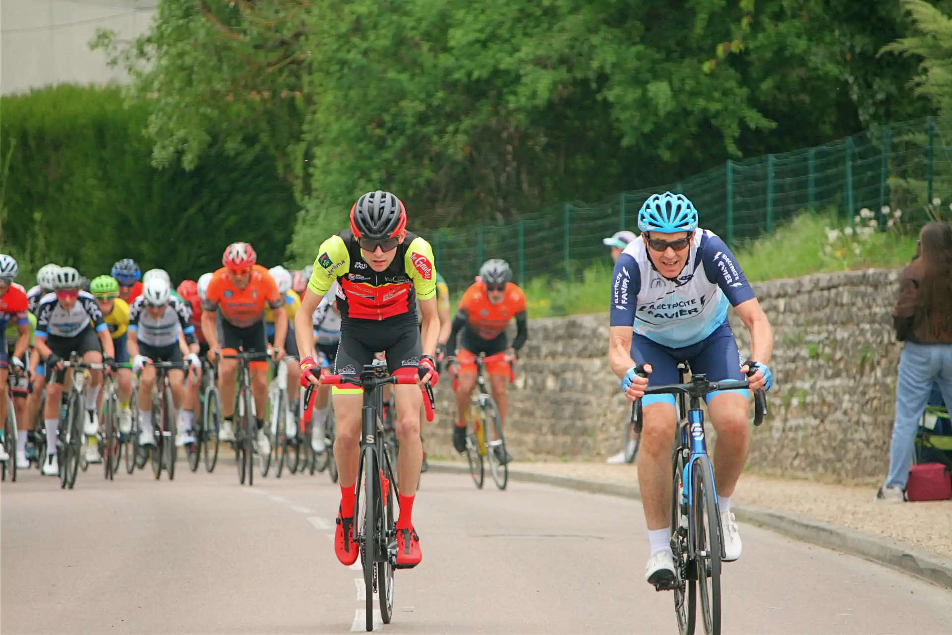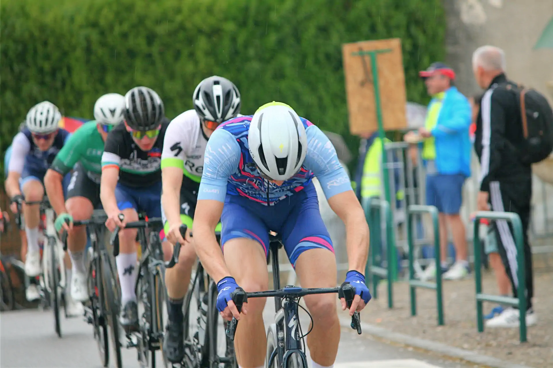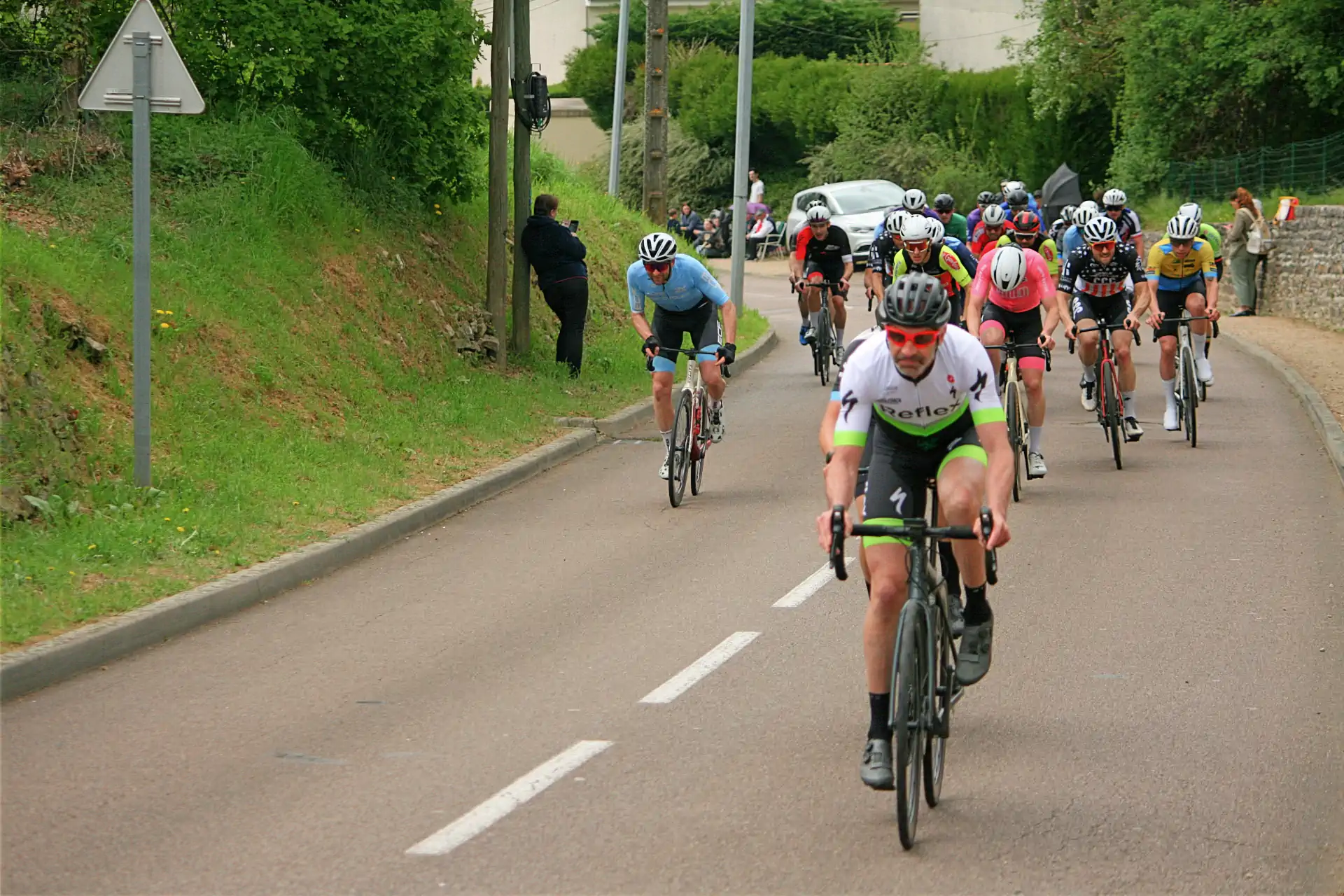 Malgré une météo pas trop clémente avec de la pluie soutenue en fin de course, de nombreux coureurs se sont affrontés sur ce circuit exigeant avec notamment cette bosse de l’arrivée.